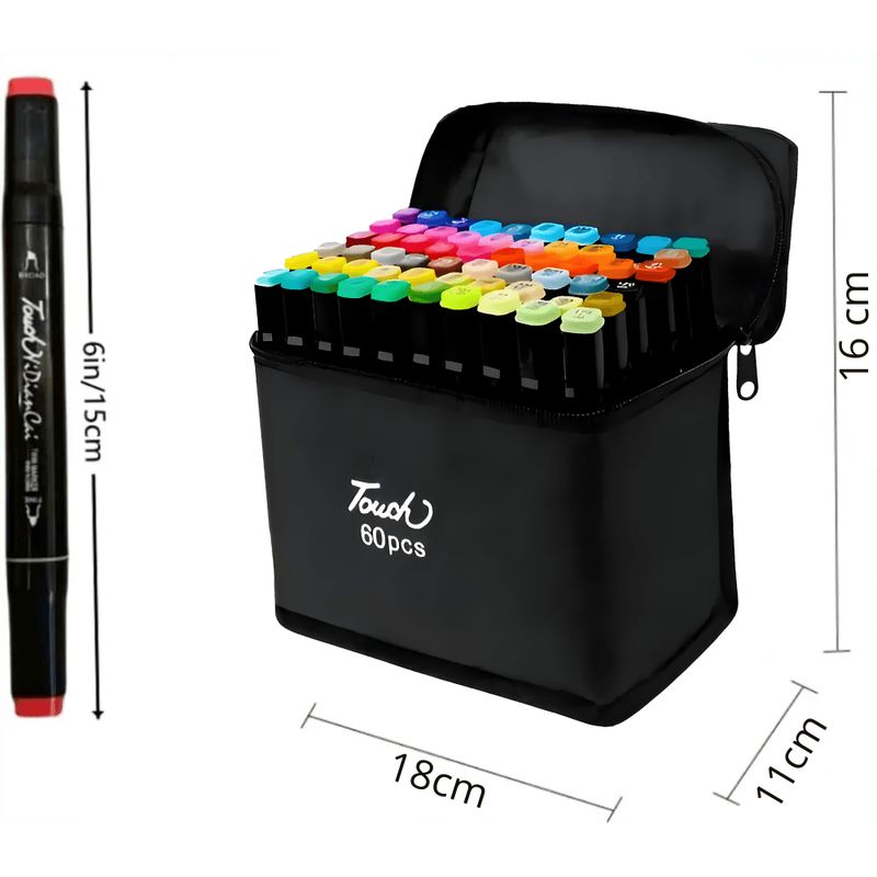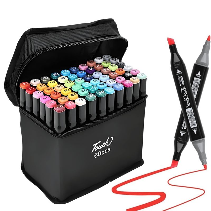 O conjunto de Canetinhas Touch Marcador Ponta Dupla oferece 60 unidades de marcadores artísticos versáteis e de alta qualidade. Com tinta à base de álcool, estes marcadores possuem secagem rápida, cores vibrantes e excelente cobertura. O design de ponta dupla (uma ponta chanfrada para preenchimento de grandes áreas e uma ponta fina para detalhes e contornos) torna este estojo ideal para artistas, designers, estudantes e entusiastas de arte que buscam precisão e transições suaves de cores. O estojo organizador facilita o transporte e a organização das canetas.