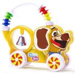 Super colorido, com argolas, rodinhas e um sininho, este cãozinho vai fazer a alegria dos pequenos.