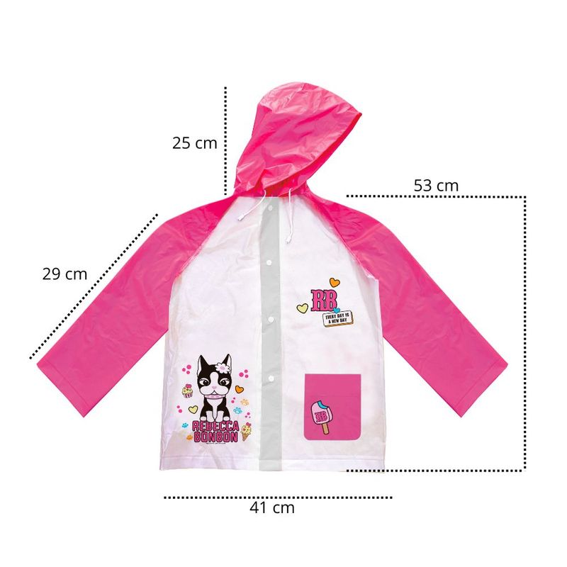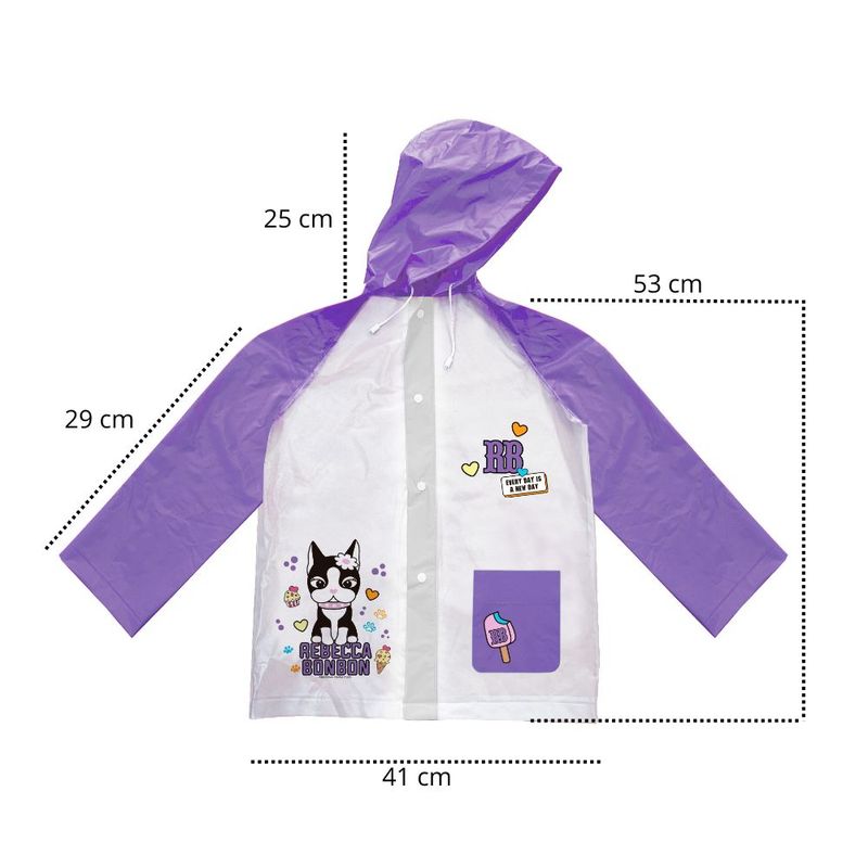 A Capa de Chuva Rebecca Bonbon chegou para trazer cor e alegria aos dias chuvosos! Com um design inspirado na charmosa bulldog francesa mais estilosa do Brasil, esta capa é a combinação perfeita de funcionalidade e moda. A capa de chuva produzida em PVC de alta qualidade e 100% fabricada no Brasil, a capa da rebeca bonbon garante proteção eficiente contra a chuva, enquanto mantém as crianças na moda. Além disso, acompanha um selo de originalidade, confirmando sua autenticidade como produto 100% original RB. Junte-se ao mundo colorido, fashion e luxuoso de Rebecca Bonbon e transforme os dias cinzentos em momentos de estilo e diversão!