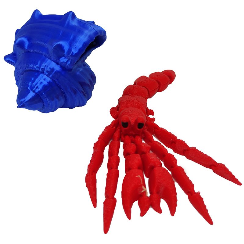 Caranguejo Eremita Paguro Articulado Impressão 3d Decoração Brinquedo Azul e Vermelho