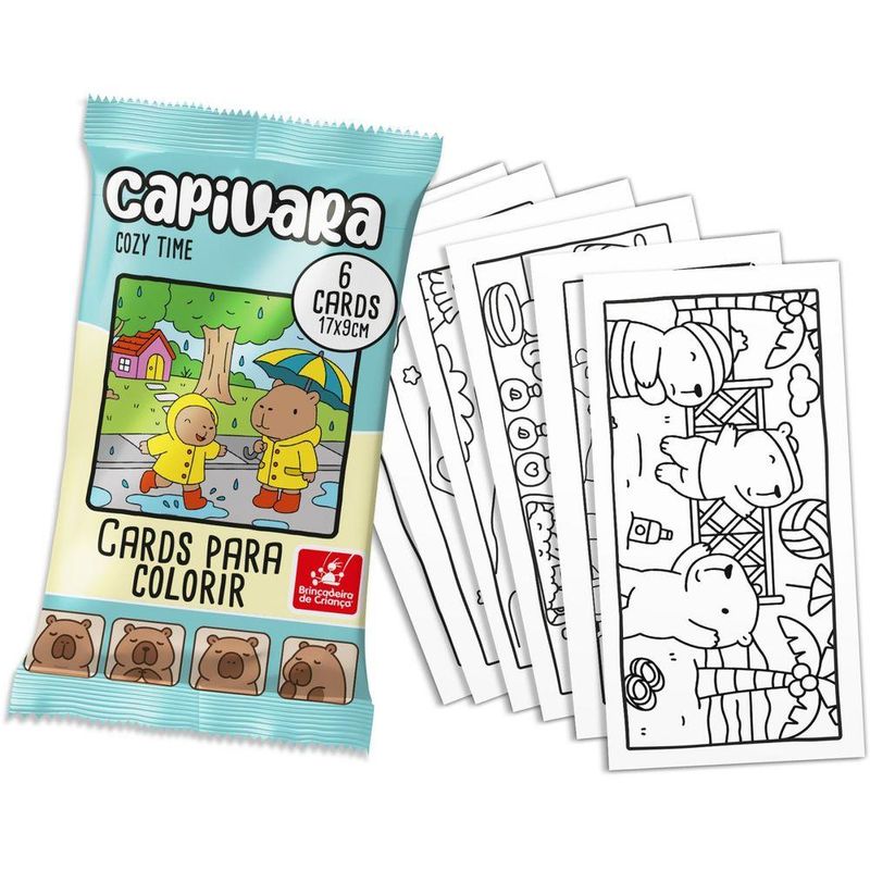 Marca: Brincadeira de criança;Nome do produto: Cards Colorir Cozy e Comfy Capivara;Idade recomendada: A partir de 4 anos;Selo Inmetro: 006332/2021;Contém: 6 cards para colorir sortidos.