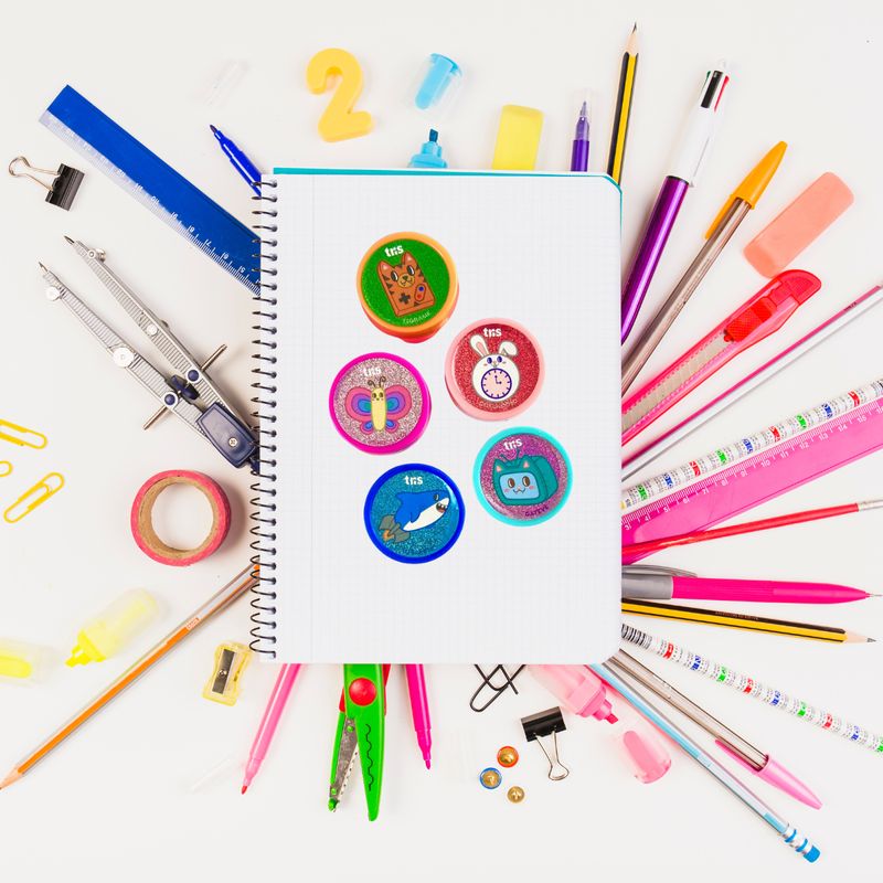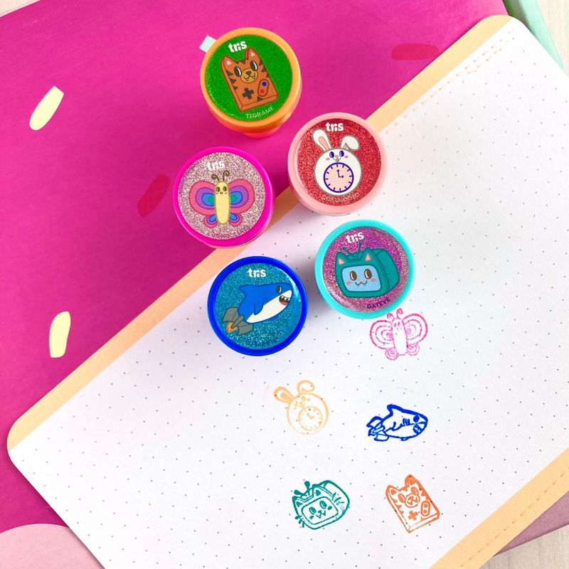 Perfeito para crianças que adoram carimbar e decorar seus cadernos, livros e projetos de arte. Ideal para uso escolar e atividades criativas em casa.