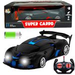 Carrinho de Controle Remoto Sem Fio Bugati Super Esportivo Preta com 6 Funções Recarregável Presente na Caixa
