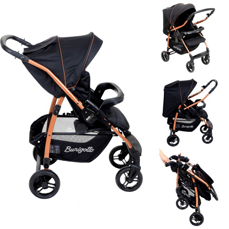 O Carrinho Burigotto Rio K 22 está disponível nas cores Preto Cobre, Mon Amour e Mesclado Preto. Todos os modelos possuem acabamento de alta qualidade, costura reforçada e estrutura leve, combinando elegância e praticidade. O design moderno reflete o padrão Burigotto, que une segurança, conforto e estilo em cada detalhe.