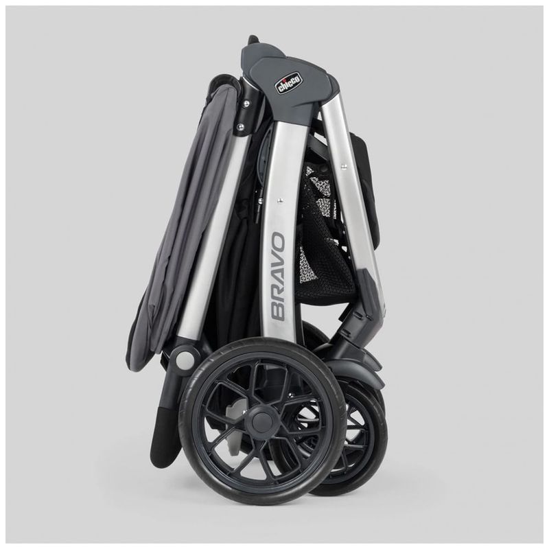 Para viagens infantis leves, o Bravo possui um dossel removível e um assento infantil, convertendo o convenientemente em um suporte de estrutura de assento de carro simplificado. O carrinho versátil aceita todas as cadeirinhas infantis Chicco vendidas separadamente através da bandeja infantil sem a necessidade de adaptador.