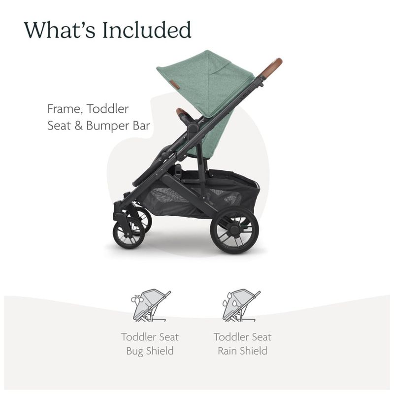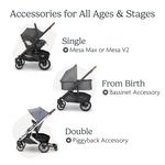 Componentes incluídos: Assento de criança, barra de proteção, proteção contra insetos, proteção contra chuva, assento infantil confortável ou acessório de berço (se adquirido separadamente)