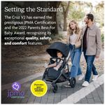 O CRUZ é feito com a combinação de alumínio e magnésio, proporcionando um desempenho ideal, leve e durável. Ele possui proteção contra todas as intempéries, incluindo chuva e insetos, e é adequado desde o nascimento com o acessório Infant SnugSeat ou berço. O assento reversível de tamanho completo permite que seu filho em crescimento ande para frente, para trás, completamente ereto, reclinado e em qualquer lugar entre.