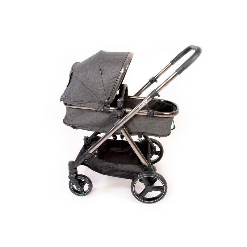 O carrinho possui estrutura leve em alumínio, com acabamento cromado, moderno e atual, revestimento especial na manopla e barra frontal, capota ajustável, ampla, com proteção solar UV50+ e visor, assento reversível, pode ser usado virado para os pais ou para o mundo, acompanhando o crescimento do bebê, facilmente converte-se em assento de passeio, reclinável em 4 posições, encosto ajustável em 2 posições, o diferencial do apoio dos pés, emborrachado, ajustável em 7 posições, que proporciona um maior conforto para os maiorzinhos e praticidade para os pais, cinto de 5 pontos com ajuste de largura e 3 posições de altura, manopla com 5 posições de altura, cesto espaçoso, rodas traseiras grandes, amortecedores, freio centralizado, em um único ponto, com indicador de travamento, controle de giro 360° nas rodas dianteiras, muito mais conforto para o bebê e para dirigir. Fechamento rápido, que pode ser feito com ou sem o assento.