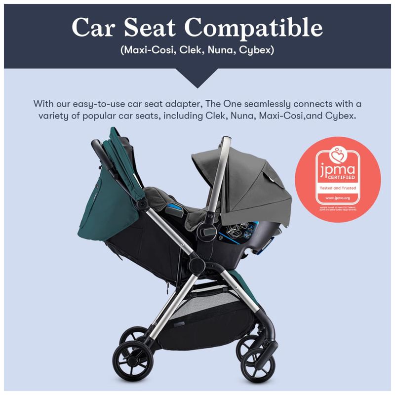 Este carrinho de bebê é feito de poliéster e é compatível com marcas populares de assentos de carro, como MaxiCosi, Clek, Nuna e Cybex, o que permite transições perfeitas do carro para o carrinho de bebê.