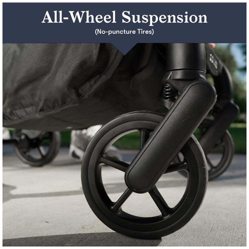 O carrinho é ajustável, permitindo que você adapte às necessidades do seu filho com recursos ajustáveis, como encosto e apoio para os pés ajustáveis, reclinação mecânica multiposições e suporte ajustável para panturrilha. Além disso, a suspensão nas quatro rodas e pneus à prova de furos garantem um passeio suave em qualquer terreno, enquanto a capota extensível UPF 50 oferece cobertura solar máxima para proteger seu filho dos raios solares.