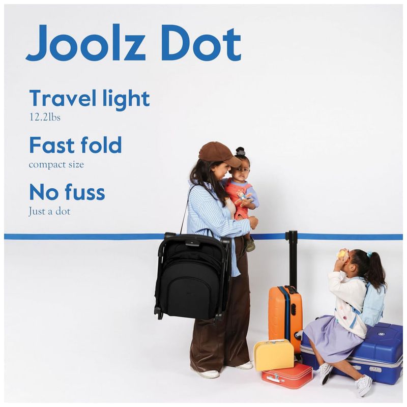 O carrinho de bebê Joolz Dot é uma solução ultraleve para famílias que buscam praticidade e mobilidade diária, pesando somente 5,5 kg. Construído com estrutura em alumínio, oferece resistência com baixo peso, ideal para transportar e armazenar em compartimentos superiores de aviões, trens e carros.