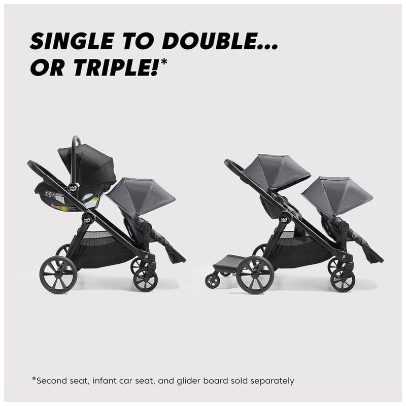 O carrinho Baby Jogger City Select 2 é feito em poliéster e é um carrinho modular completo que pode ser convertido de carrinho simples para duplo ou triplo com planador, segundo assento e assento infantil para carro vendidos separadamente . Ele é muito fácil de levantar e carregar, sendo mais leve que o City Select Onestep compacto dobrável original e 20 menor que o carrinho singletodouble líder em comparação com o carrinho singletodouble UPPAbaby Vista V2 2020 nos EUA.