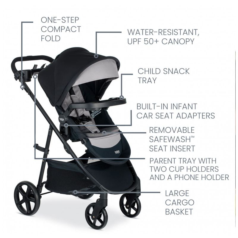 ulli MAIS MANEIRAS DE PASSEAR O assento reversível para carrinho de criança também pode ser combinado com assentos infantis vendidos separadamente e muda facilmente de voltado para os pais para voltado para a frentelili ESTRUTURA ULTRALEVE Carrinho portátil com estrutura ultraleve sem sacrificar a durabilidade, o que significa que você pode usá lo por um longo prazo sem o peso extra no seu carrinho significa que você não precisa mais lavar as mãos ou esperar que os tecidos sequem ao ar Apenas uma limpeza rápida e fácil para que você possa continuar se movendoliliDOBRA RÁPIDO Economize tempo e espaço no porta malas este carrinho fecha de forma compacta em um simples passoliliQUARTO PARA CRESCER O carrinho Britax é adequado para crianças de até 50 anos lbs e compatível com Britax Willow S Britax Willow e assentos de carro infantis competitivos selecionados lili CESTA DE CARGA GRANDE A cesta do carrinho é de fácil acesso, mantendo seus pertences seguros e fora da vista lili ASSENTO DE CRIANÇA RECLINÁVEL Descanse confortavelmente em qualquer lugar ou sente se direito neste carrinho para ver o mundo BANDEJA DOS PAIS Com dois porta copos e um suporte vertical para telefone, todos os seus itens essenciais podem ficar ao seu alcance durante a operação deste carrinholiliBANDEJA DE LANCHES PARA CRIANÇAS Balança para fora do caminho para facilitar o carregamento e trava no lugar quando você estiver pronto para passearliliARNÊS FÁCIL DE AJUSTE O arnês do carrinho permite ajustes simples e cresce junto com o seu filholiliUPF RESISTENTE À ÁGUA 50 CANOPY O carrinho portátil possui dossel resistente à água com viseira solar rebatível e janela esconde esconde liliÚLTIMO PARA O LONGO PRAZO O carrinho de criança com dossel sem desbotamento e apoio para os pés noscuff permanece parecendo novo, quilômetro após quilômetro liul