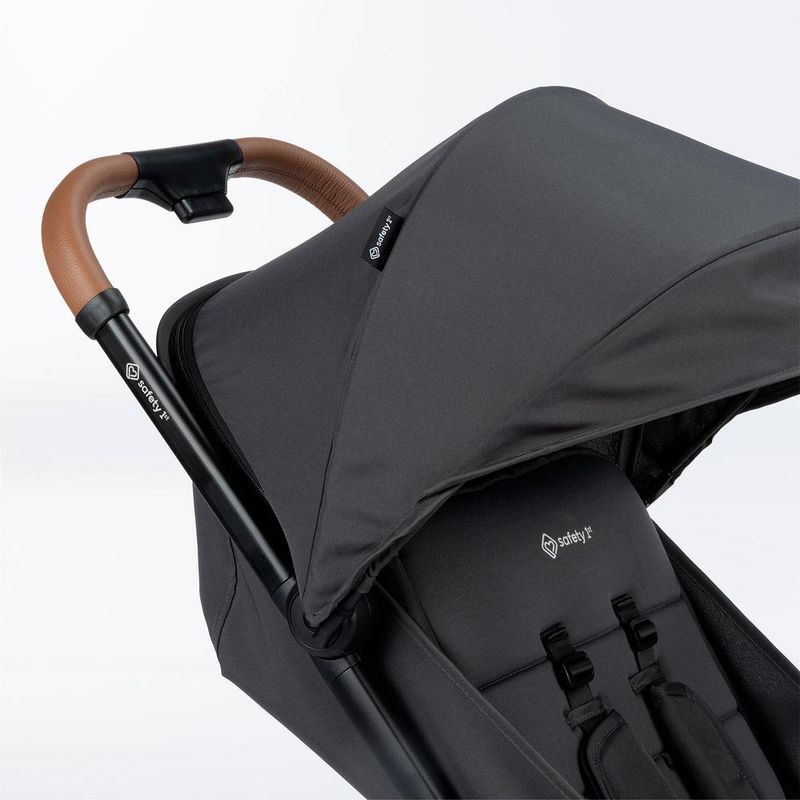 - Manopla e barra frontal do carrinho revestidas com tecido especial, confortável e com um toque de estilo.
