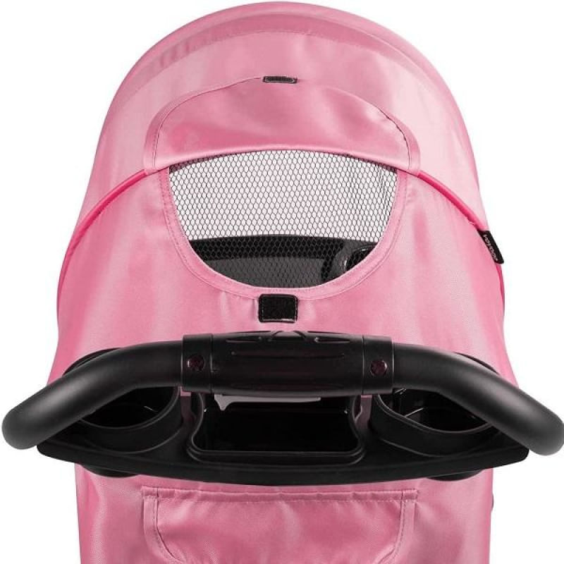 Conta ainda com a capota ampla, com visor para espiar o bebê nos passeios e a facilidade da bandeja porta-copos dupla, uma para os pais outra para a criança.