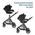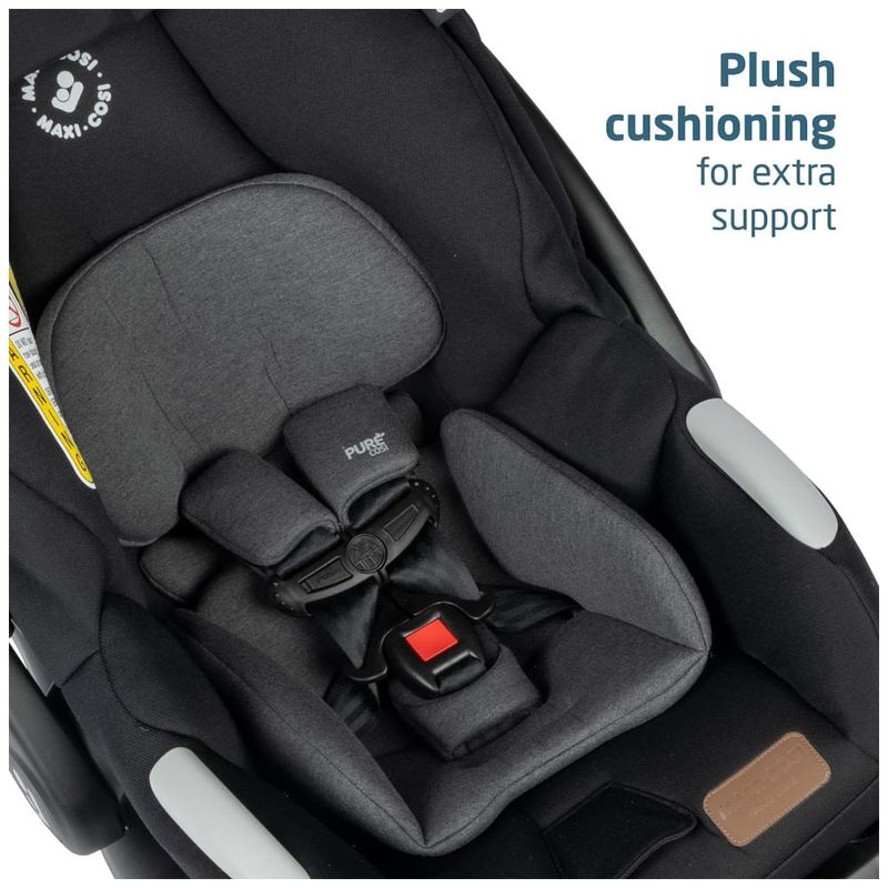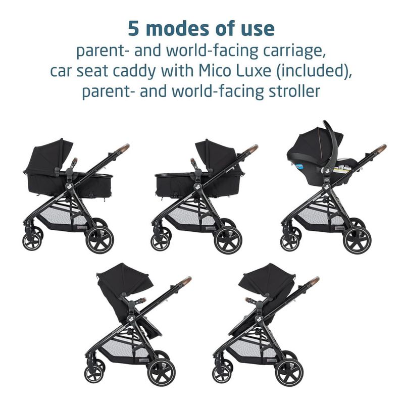 O conjunto inclui a leve cadeirinha infantil MICO LUXE INFANT CAR SEAT, projetada para ajustes rápidos e perfeitos entre o carro e o carrinho, e que possui recursos avançados de segurança, inserções infantis macias e tecidos PureCosi premium. Além disso, o carrinho é facilmente dobrável e independente, tornando o um carrinho de viagem conveniente para viagens de avião e fácil armazenamento em casa.