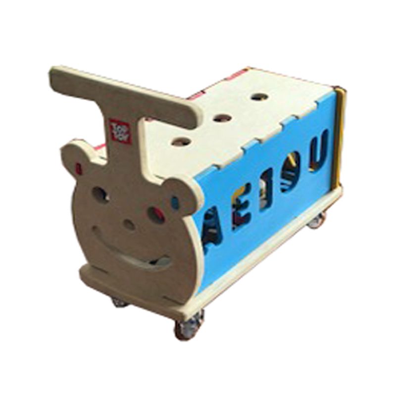 Lindo andador com muitas atividades, possui rodas que deslizam e a movimentação é feita pelos pés, trabalhando a coordenação motora e o equilíbrio. Em cada lado do carrinho possui uma informação diferente, possuem formas vazadas para encaixe de vogais, formas e números.