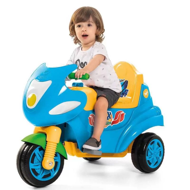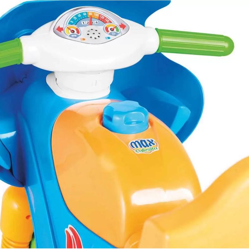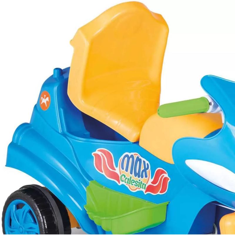 Max Calesita é ideal para proporcionar a criança um passeio e um pedalar muito divertido Desenvolvido com design moderno e arrojado, Max Calesita é uma moto completa para a garotada se divertir. Vem com aro protetor, apoio de pés e empurrador que facilita a direção com maior conforto e segurança. Max Calesita é uma moto 2 em 1 que se destaca por acompanhar o crescimento da criança, vem com buzina para deixar o passeio mais alegre, e possui espaço para guardar brinquedos. Ao tirar os acessórios de passeio, o guidão gira e a criança pode pedalar e desenvolver a coordenação dos movimentos.Diversão beleza e praticidade no dia a dia do seu filho.