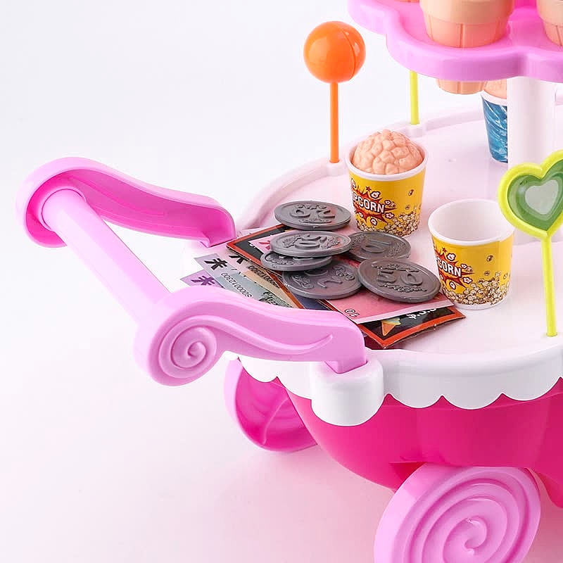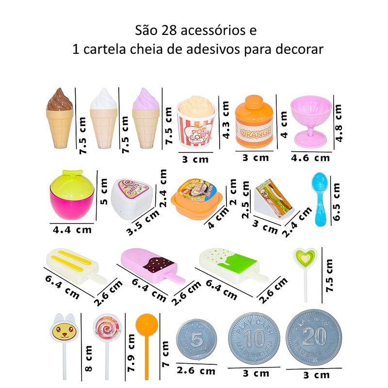 Carrinho de Sorvete com Música Sorveteria Infantil para Montar e Decorar com Luz e 28 Acessórios