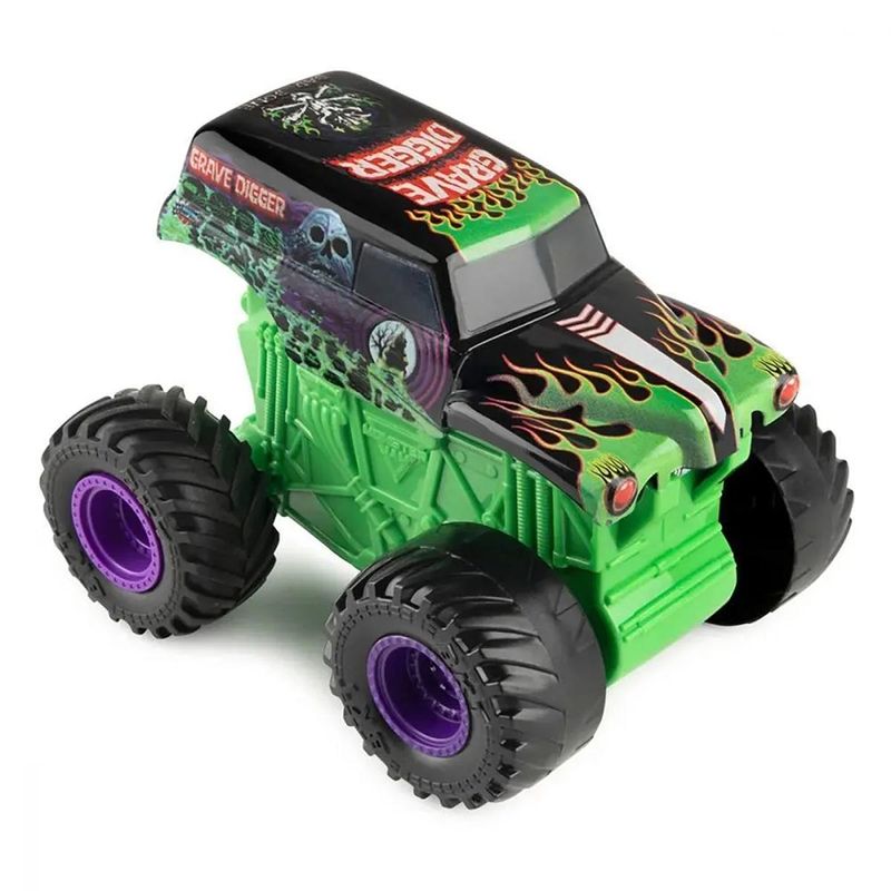 Carrinho Grave Digger Calota Verde Click & Flip- Monster Jam