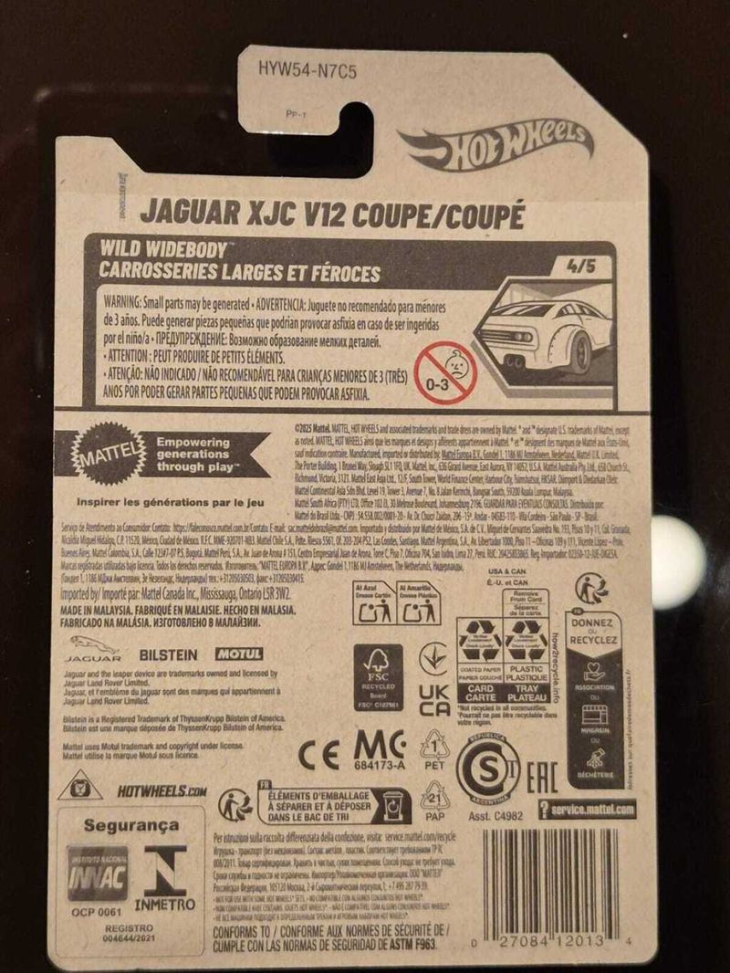 Carrinho Hot Wheels 1:64 - Metal - Original - O Jaguar XJC tornou-se uma lenda. Este grafismo inspira-se no Big Cat (como o jaguar, símbolo da marca passou a ser chamado por causa deste carro) que corria com o número 8 e usava as mesmas cores e composição gráfica (Broadspeed) Colecionismo é mais que um hobbie, é entretenimento, é terapeutico e é investimento. ATENÇÃO: Carrinho de coleção antiga, novo, na embagem, no entanto a embalagem pode apresentar desgaste ou sujidade. Este carrinho faz parte da linha básica Hot Wheels, garantindo qualidade e autenticidade. Com escala 1:64, ele apresenta uma carroceria ou chassi de metal, proporcionando durabilidade e acabamento impecável, ideal para colecionar ou presentear. Não perca a chance de ampliar a sua coleção com este carrinho Hot Wheels e dar um toque especial à sua coleção ou ao presente de quem você gosta! Garanta já o seu Carrinho Hot Wheels 1:64, pois é uma edição antiga que não se encontra mais nas lojas..