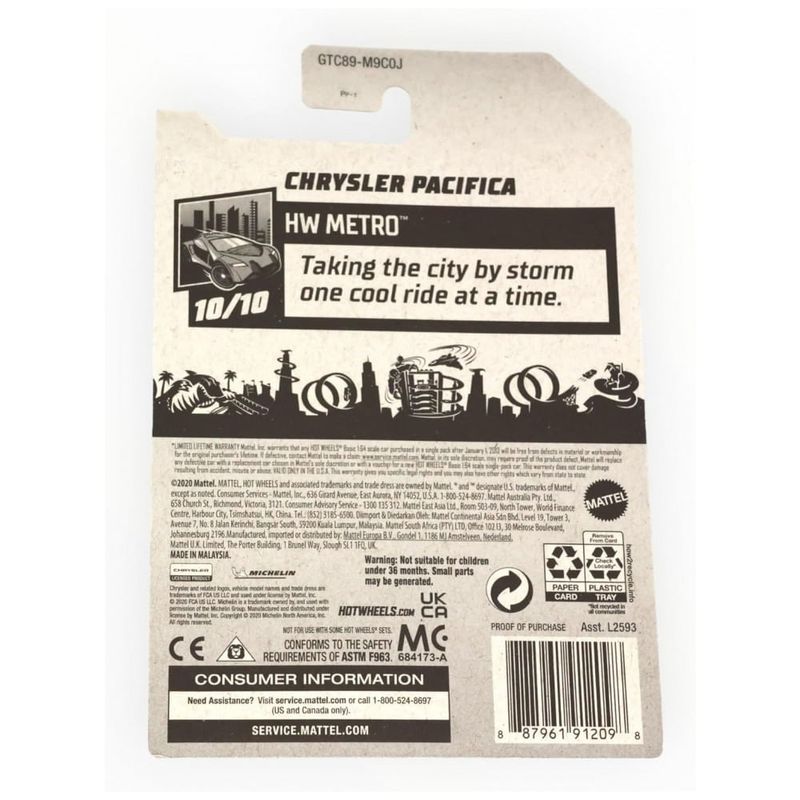 Explore o mundo da coleção Hot Wheels com este incrível carrinho Chrysler Pacifica Treasure Hunt! Com design detalhado e fabricado em metal fundido, este modelo em escala 1:64 é ideal para colecionadores e entusiastas. Com acabamento impecável, este carrinho foi produzido na Malásia e faz parte da série HW Metro 1010 Treasure Hunt. Leve, compacto e cheio de estilo, é perfeito para criar aventuras em alta velocidade e dar um toque único à sua coleção.