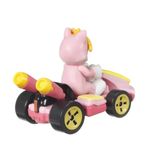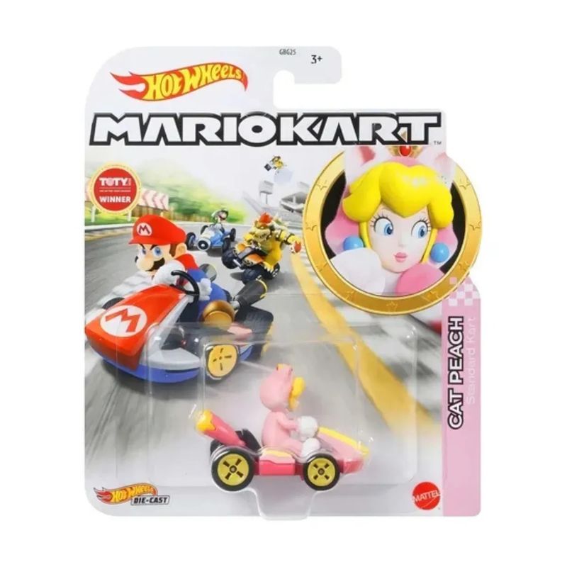 - Certificação Inmetro: CE-BRI/INNAC 00552-01AAviso:Imagens meramente ilustrativas. As cores e detalhes podem variar conforme o lote de fabricação.Com o Hot Wheels Mario Kart Cat Peach, a diversão das corridas virtuais ganha vida, trazendo emoção e nostalgia para colecionadores e fãs da franquia Nintendo.FAQ:
