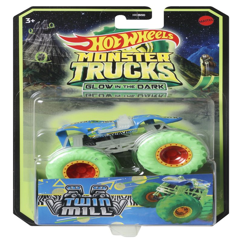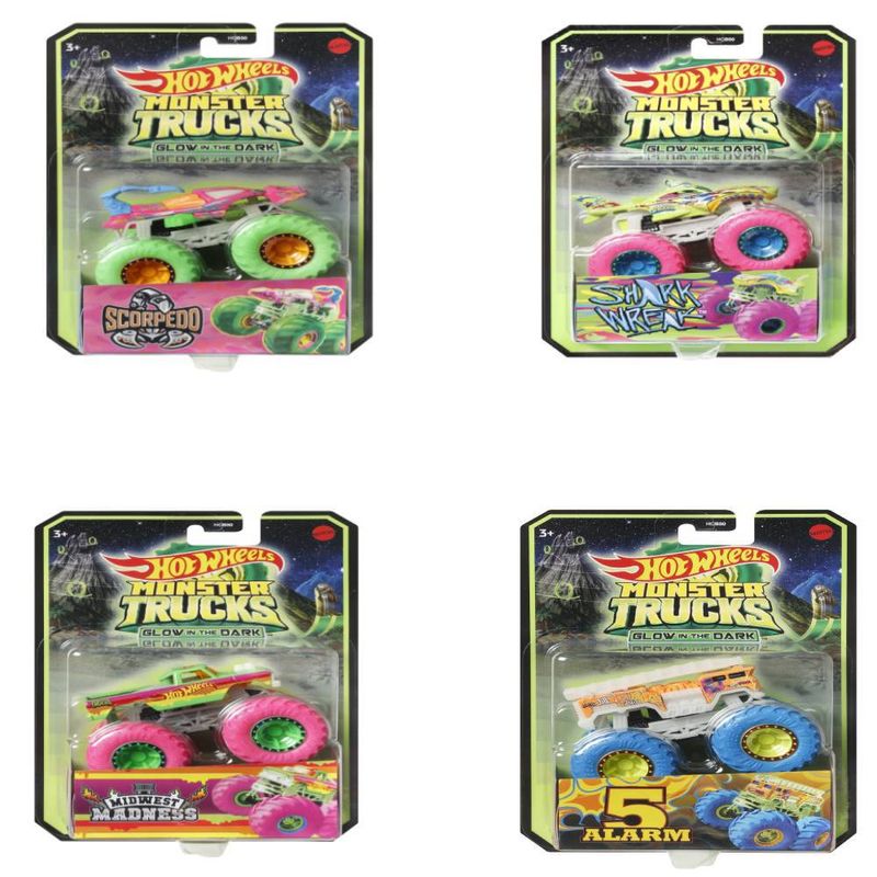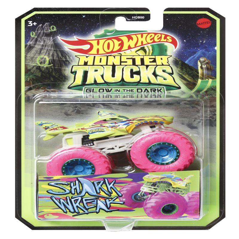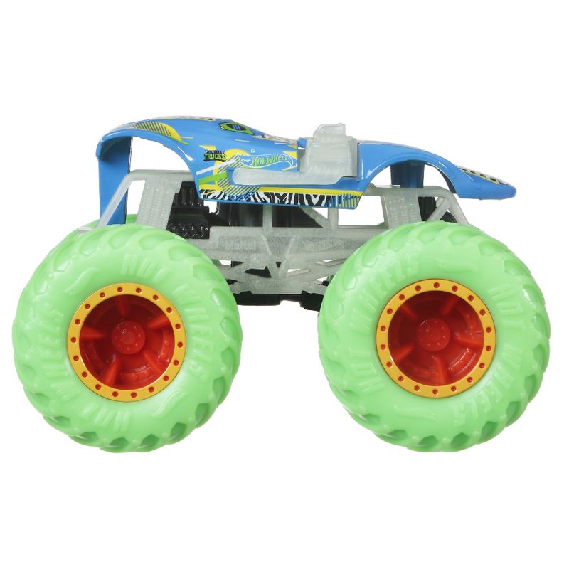 A ação fica mais emocionante quando as luzes se apagam com os Hot Wheels Monster Trucks que brilham no escuro! Os elementos que brilham no escuro em cada carro da linha trazem uma nova interpretação da "velocidade da luz", já as rodas gigantes e os designs incríveis inspiram uma ação interminável de bater e esmagar. Você poderá vivenciar toda essa emoção no escuro! Personalidades épicas contribuem para a diversão com detalhes, como nome, tipo de caminhão, força e ataque de colisão único. Fãs e colecionadores de Monster trucks vão querer todos eles! Excelente presente para crianças de 3 a 8 anos. Cada produto é vendido separadamente, sujeitos a disponibilidade. As cores e as decorações podem variar.