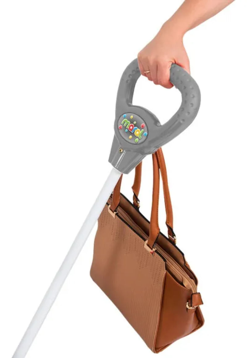 A haste que guia o carrinho vira as rodas e é fácil de remover, tem grip de toque seguro e vem com gancho para pendurar bolsa. O anel de proteção levanta para facilitar o acesso à criança. A chave gira, o câmbio faz creck creck e a buzina tem som divertido.