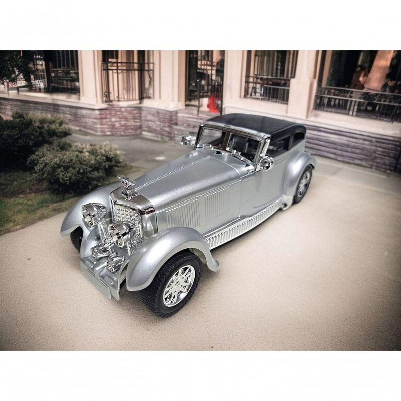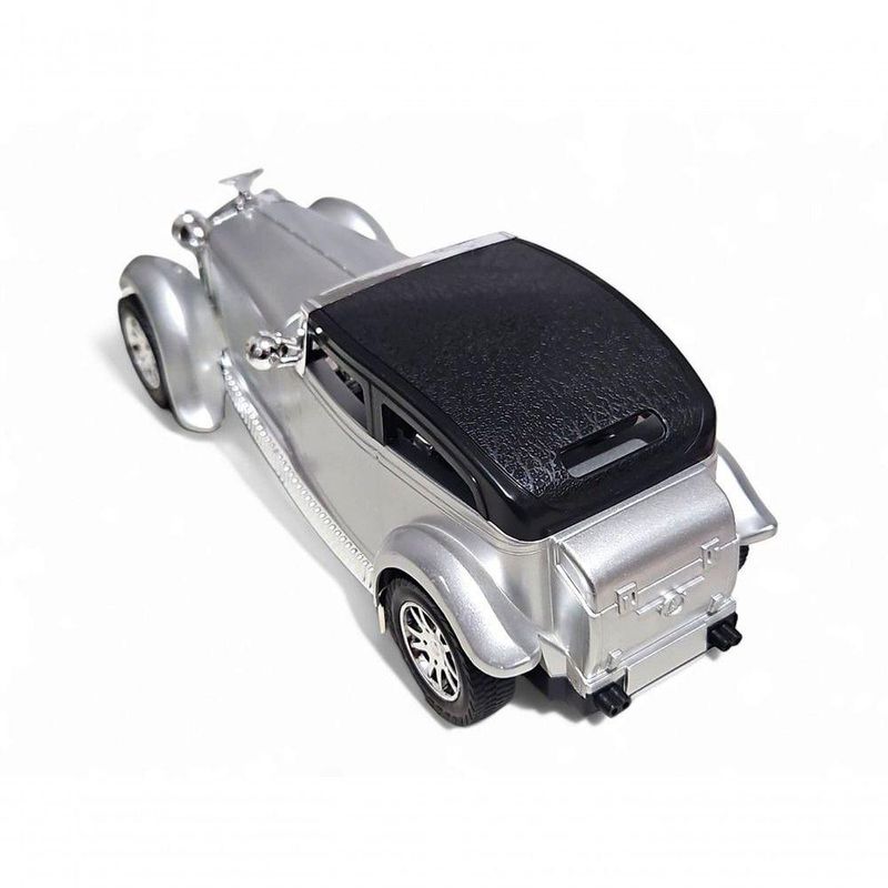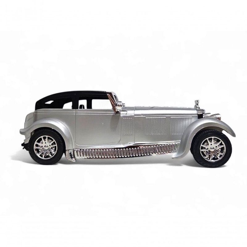 Carrinho Miniatura Antigo Clássico Fricção Colecionável 24cm Prata Jr0868