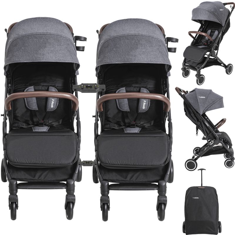 Carrinho de Bebe para Gêmeos Kiddo Sprint II com Bebe Conforto Casulo Click e Base para Carro
