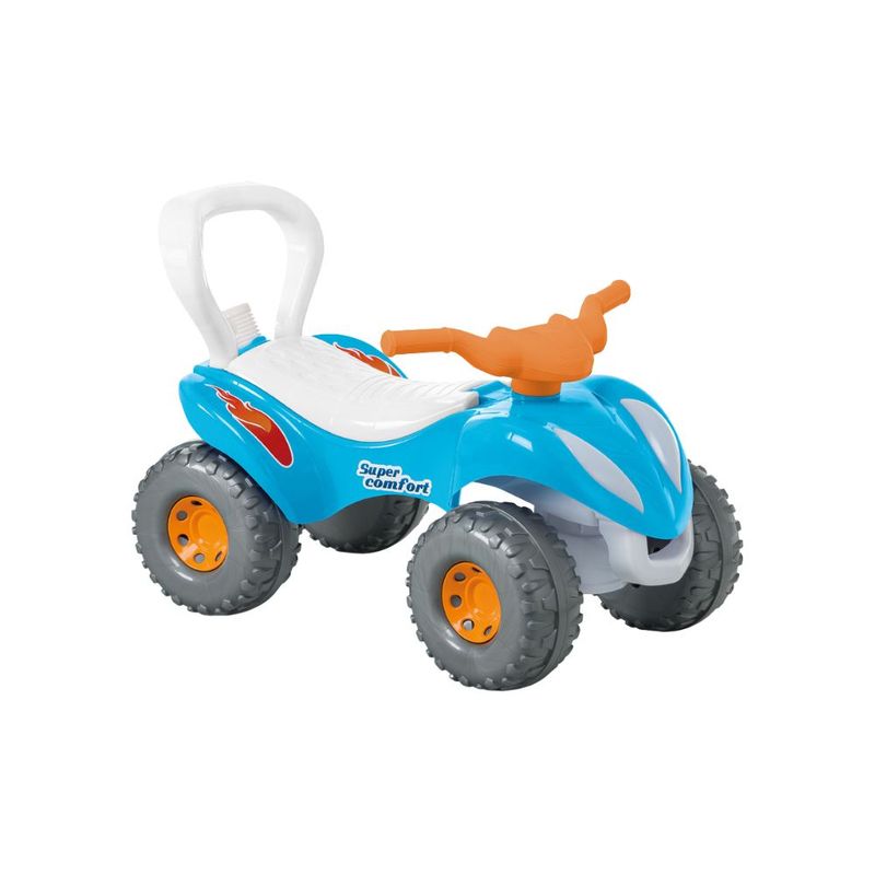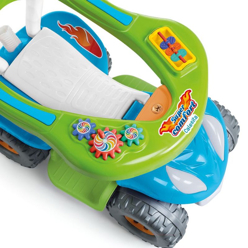 Para passear e se divertir! O Super Comfort acompanha um aro protetor com acessórios interativos com peças em relevo, cores e formas que despertam a curiosidade dos pequeninos. Para a versão passeio, acompanha também apoios de pé removível e empurrador com suporte para bolsa. A diversão vai além da versão passeio. Para a diversão continuar com a versão passo a passo, é só desencaixar o aro protetor, retirar os apoios de pé e a haste. Agora é só brincar de montão por aí! Ah, o Super Comfort tem também um espaço embaixo do banco para guardar pequenos acessórios. Calesita, brincadeira de verdade! Contém: 1 Super Comfort 1 Empurrador com suporte para bolsa 1 Aro protetor 1 Suporte para os pés 1 Manual de Instruções Registro de Objeto INMETRO 002042/2021 OCP 0061 Habilidades desenvolvidas: Coordenação entre olhos e pés Coordenação motora fina – mãos e dedos Coordenação motora grossa – braços e pernas