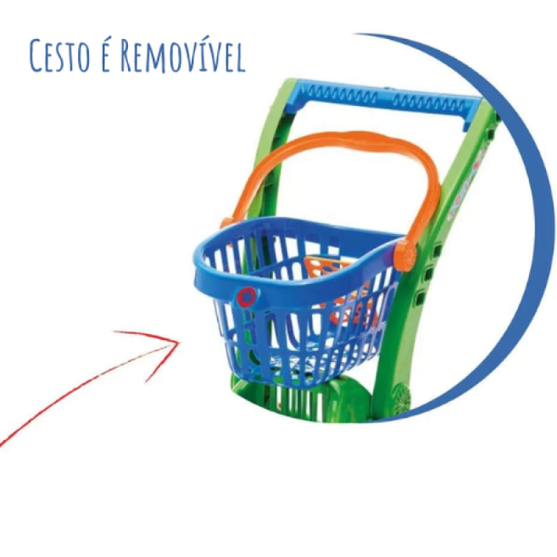Para estimular a imaginação e aprendizado pela imitação.A característica marcante do estilo visual fica por conta das cores predominantes tropicais. O carrinho é 2 em 1, foi desenvolvido com uma ótima estrutura para empurrá-lo, e com um cesto é removível.