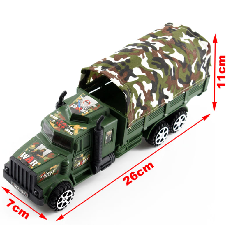• 01 Caminhão a fricção camuflado - Altura:11cm X Largura:7cm X Comprimento:26cm