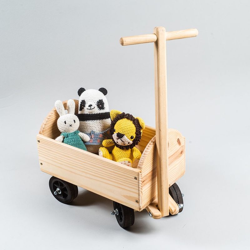 A Carriola M OllyToys é reforçada e com o tamanho ideal para que crianças possam sair com ela na rua e carregar objetos especiais que encontram pelo caminho, ou claro, aqueles brinquedos que precisam dar uma voltinha pela praça ou parque. Possuí eixo de aço, pneus de borracha e é feita com madeira de reflorestamento. Medidas do carrinho sem a haste: (C x A x L) 40 x 30 x 28 cm, medida da haste 60 cm.