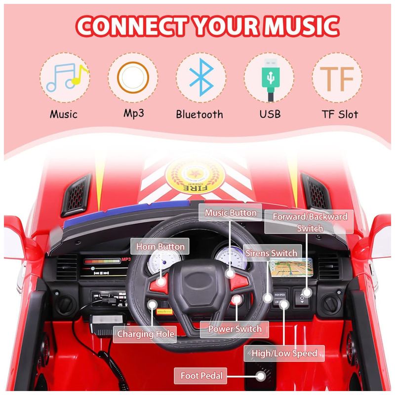 Ideal para bebês e crianças a partir de 36 meses com capacidade máxima de peso de 30,39 quilos, este veículo elétrico é ASTM certificado. Capaz de conectar seu dispositivo por interface USB, MP4, TF para reproduzir músicas e histórias e Bluetooth integrado, música e buzina para tornar a viagem de condução do seu filho mais agradável. Além disso, as luzes LED de alto brilho fazem com que a criança se sinta super bem ao dirigir à noite.