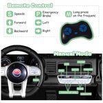 Dois modos de condução a. Modo de controle remoto dos pais Os pais têm a opção de controlar as direções em que o filho entra, aproveitar a felicidade de estar junto com o bebê. b. Modo de operação da bateria As crianças terão proficiência no uso da aceleração do pedal e do volante para operar seu próprio carro elétrico
