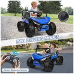 O carro elétrico infantil ANPABO proporciona potência, segurança e diversão para crianças de 3 a 12 anos, com quatro motores de 200W, 24V de potência, suspensão independente com quatro molas e pneus antiderrapantes para todos os tipos de terreno. O modelo possui dois assentos individuais com cintos de segurança ajustáveis, estrutura reforçada em metal, espaço interno ampliado e controle remoto para operação dos pais com três velocidades e parada de emergência. Destaque para os efeitos Rainbow LED, luzes frontais e traseiras, sistema de som integrado, conexão Bluetooth para músicas e histórias, além de compartimento de armazenamento para brinquedos. Capacidade máxima de 63 kg, fácil de montar, e ideal para presente de aniversário ou Natal.