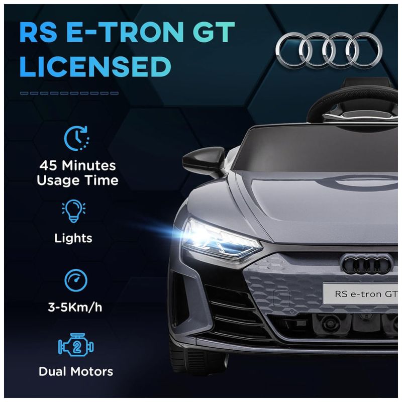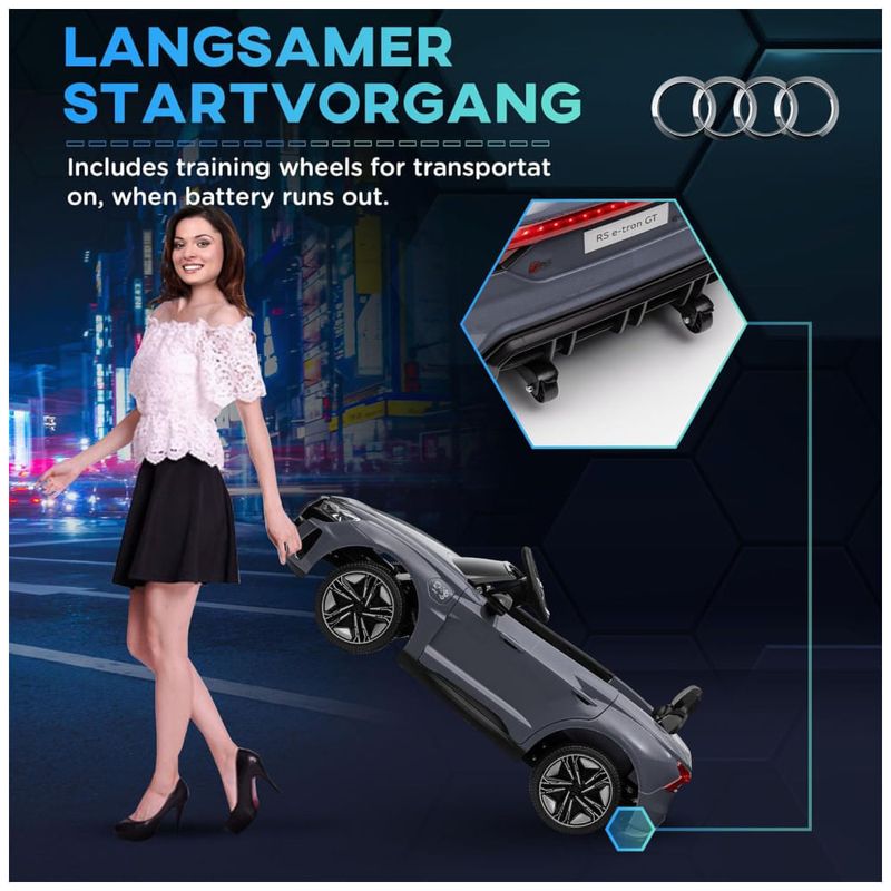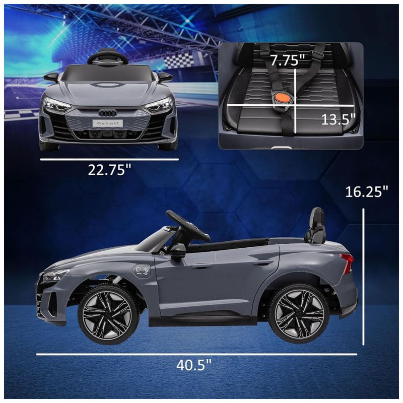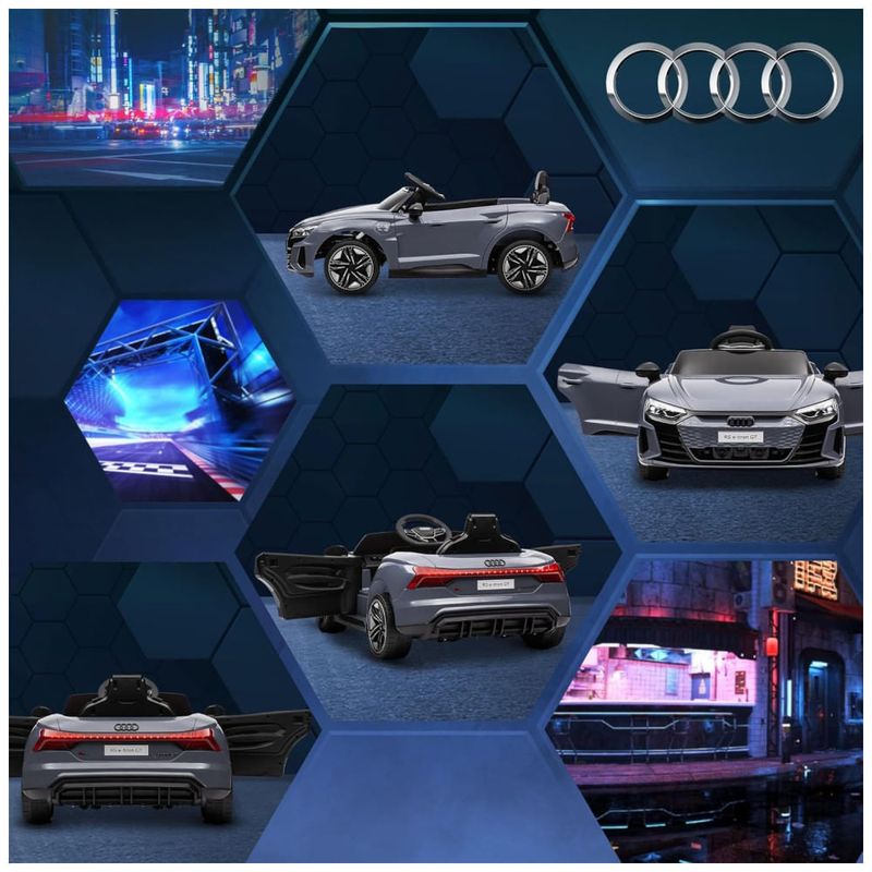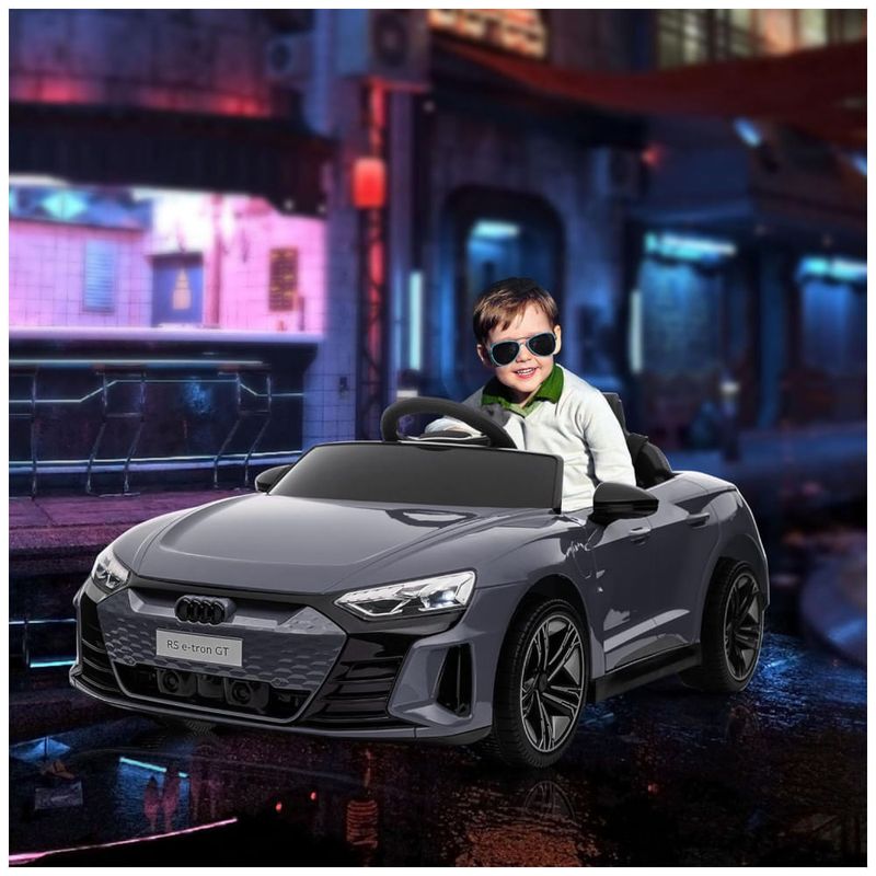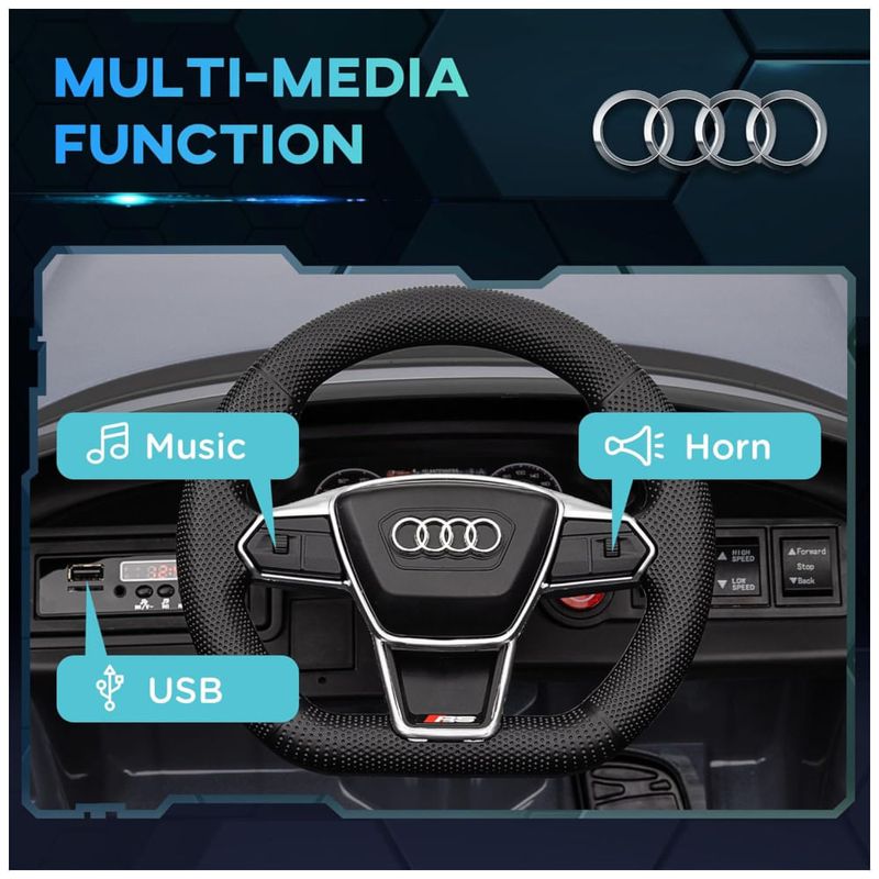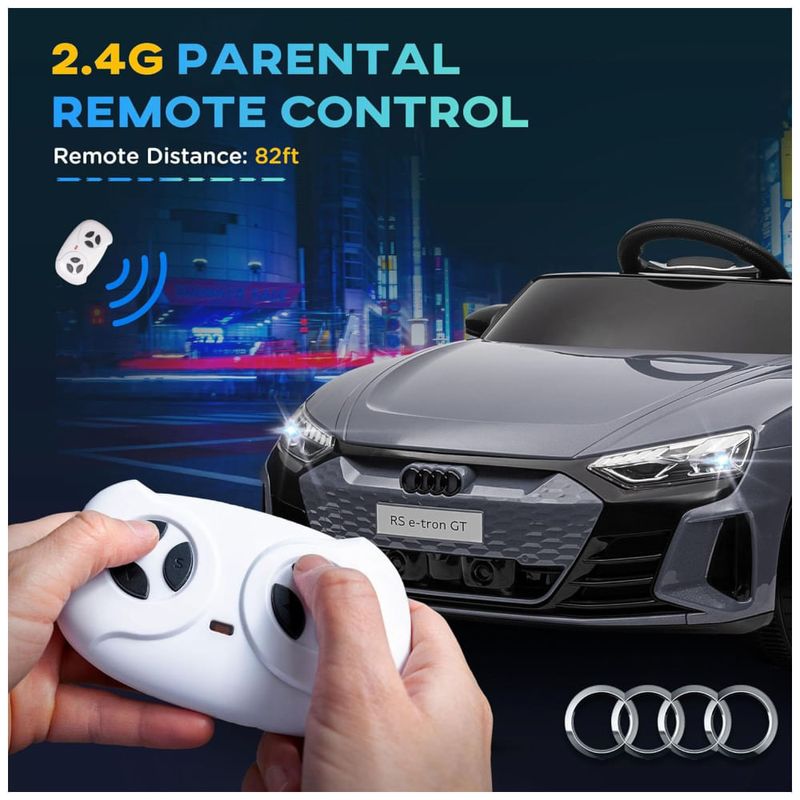 O carro conta com uma porta USB e uma entrada AUX no painel, permitindo que as crianças toquem suas músicas favoritas e criem um ambiente ainda mais realista durante o passeio. As crianças podem dirigir o carro sozinhas ou, para maior segurança, os pais podem assumir o controle com o controle remoto incluído.