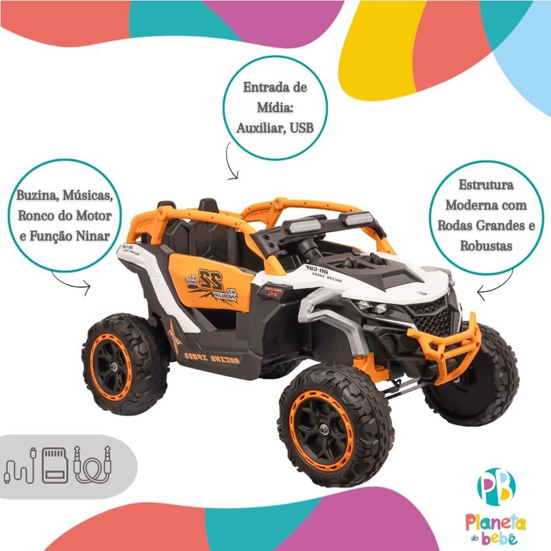 Inspirado em um Buggy real, ele possui uma estrutura robusta e estável, com rodas grandes e design de alta performance. Perfeito para os pequenos que adoram explorar a natureza, ele oferece uma pilotagem suave e potente, capaz de enfrentar diferentes tipos de terrenos. Equipado com uma bateria recarregável de 12v, garante longas horas de diversão com apenas uma carga.