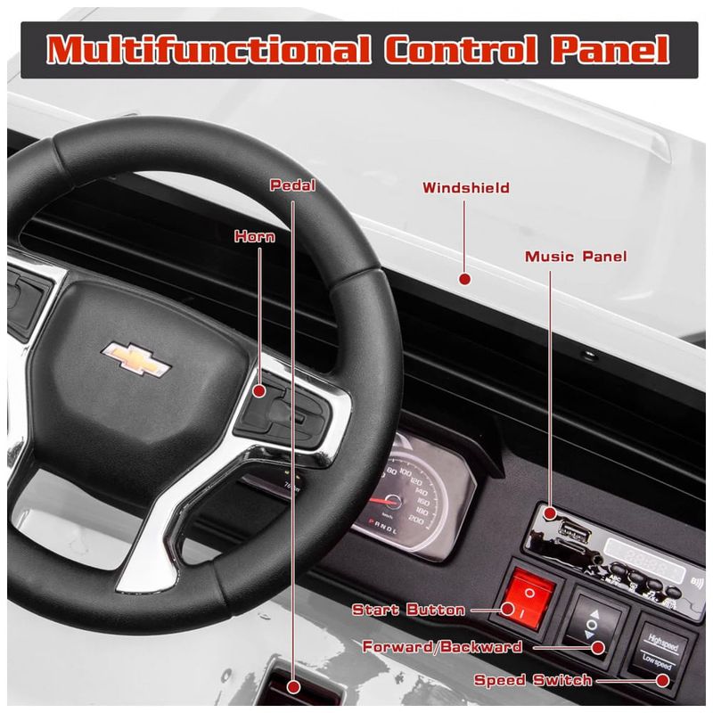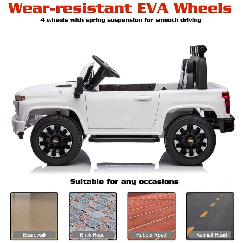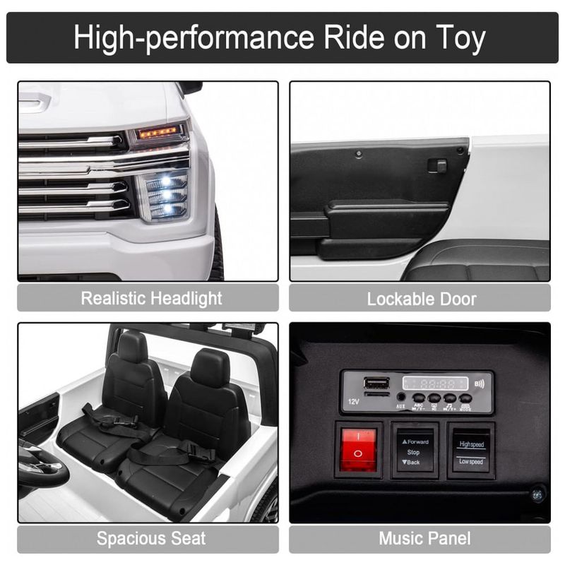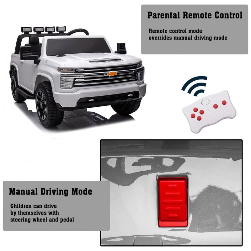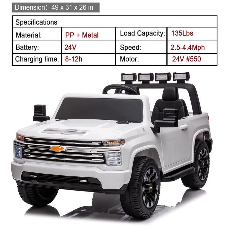 Carro Elétrico Infantil Chevrolet a Bateria 24V com 2 Lugares, Música, Luz LED e Controle Remoto, POSTACK, Branco