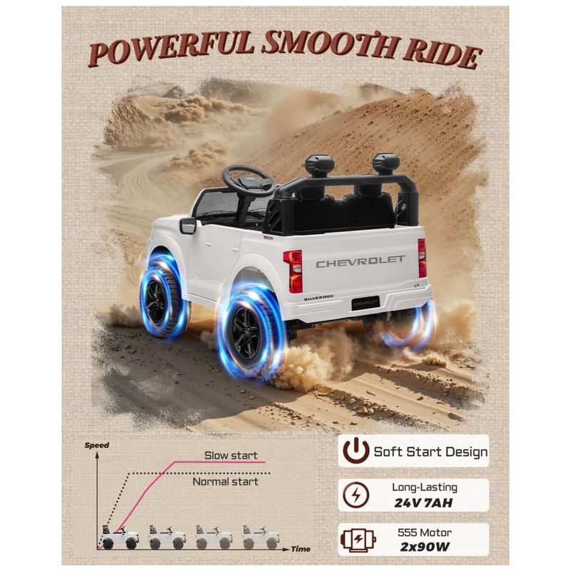 Descubra o Carro Elétrico Infantil Chevrolet Silverado 24V, licenciado oficialmente e projetado para proporcionar uma experiência de direção realista para crianças apaixonadas por caminhonetes robustas. Com detalhes autênticos, grade frontal imponente e logotipos originais Chevrolet, este veículo de brinquedo traz estilo e potência para os pequenos motoristas.