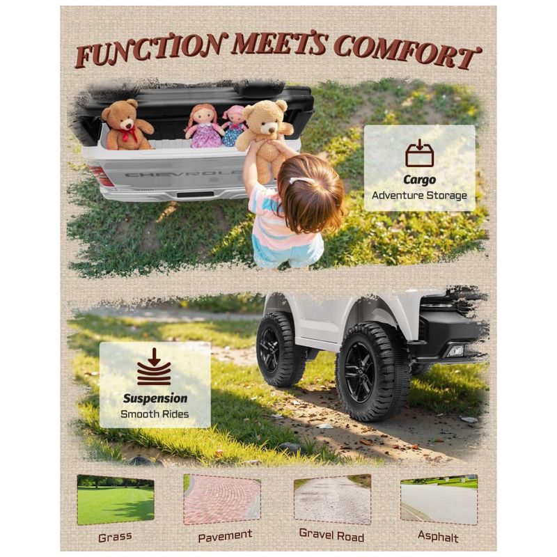Ideal para presentear em aniversários, Natal e datas especiais, este Chevrolet Silverado 24V inspira momentos inesquecíveis em família, estimulando a imaginação, o companheirismo e a alegria das crianças. Sempre supervisione durante o uso, mantenha o cinto ajustado e utilize em superfícies planas e estáveis.