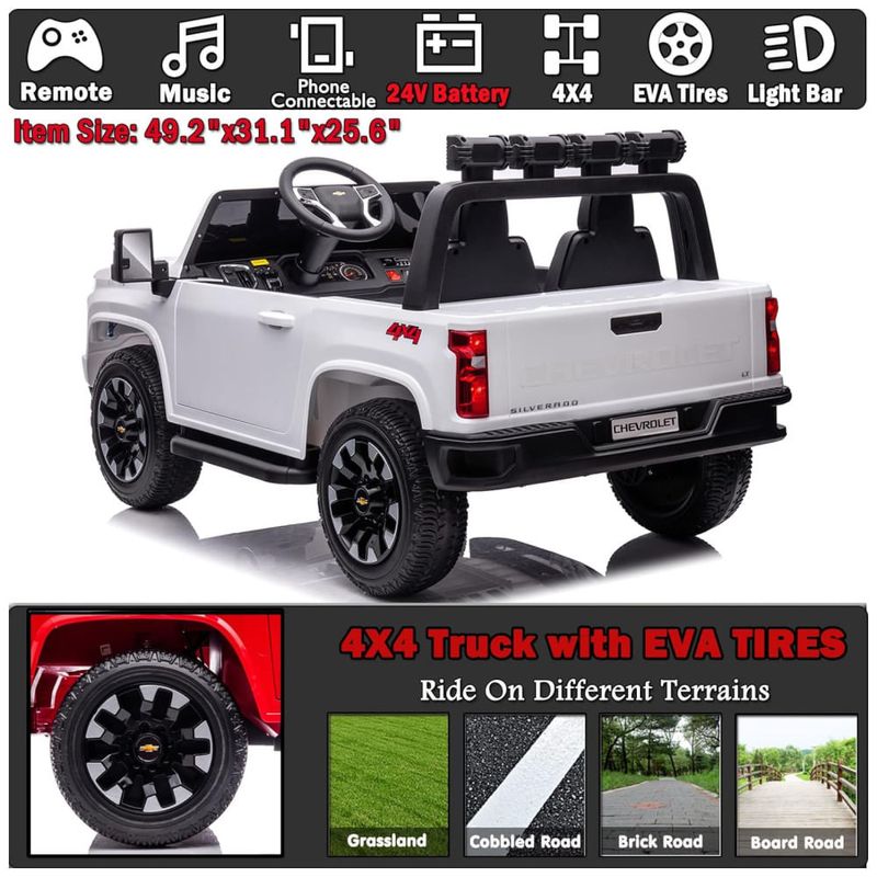 Este carro elétrico infantil, inspirado no Chevrolet Silverado HD, oferece uma experiência de condução empolgante e segura para as crianças. Com um design atraente e um corpo feito de plástico PP durável, certificado pela ASTM F963, este carrinho é ideal para passeios.