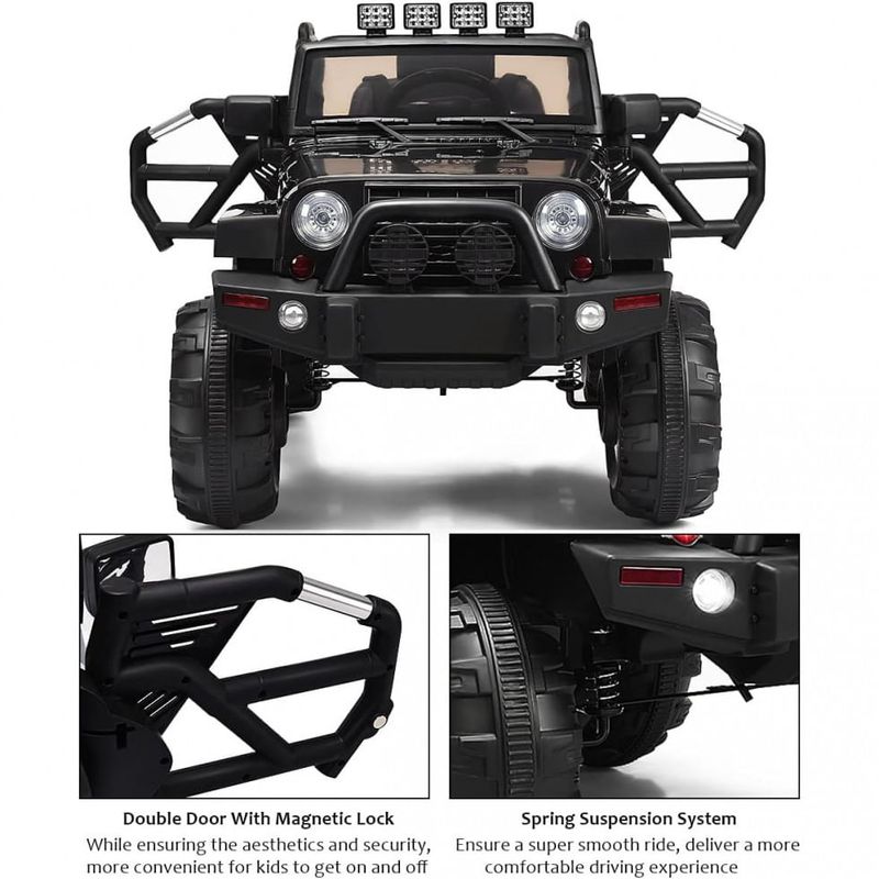Aparência legal e realista Apresentando luzes dianteiras e traseiras brilhantes e porta dupla com fechadura magnética, este passeio no caminhão está empenhado em proporcionar aos seus filhos a experiência de condução mais autêntica. A forma legal do caminhão vai, sem dúvida, torná lo uma existência real no brinquedo de buggy. O sistema de suspensão de mola garante um passeio super suave.