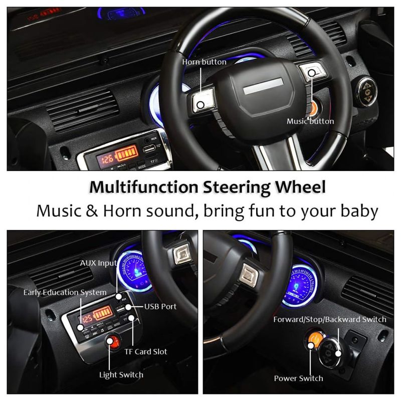 Função atraente e divertida Com funções para frente e reverso e três velocidades no controle remoto para ajuste, as crianças ganharão mais autonomia e entretenimento durante o jogo. Equipado com leitor de MP3, entrada AUX, porta USB e slot para cartão TF, este caminhão elétrico é capaz de ser conectado ao seu dispositivo para reproduzir música ou histórias. Traz uma surpresa extra para o seu bebé.