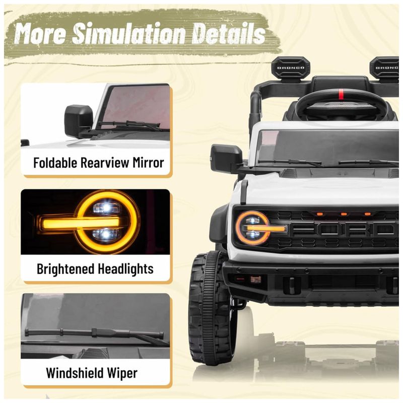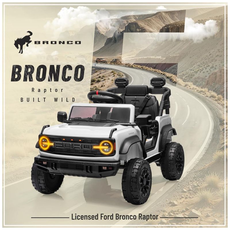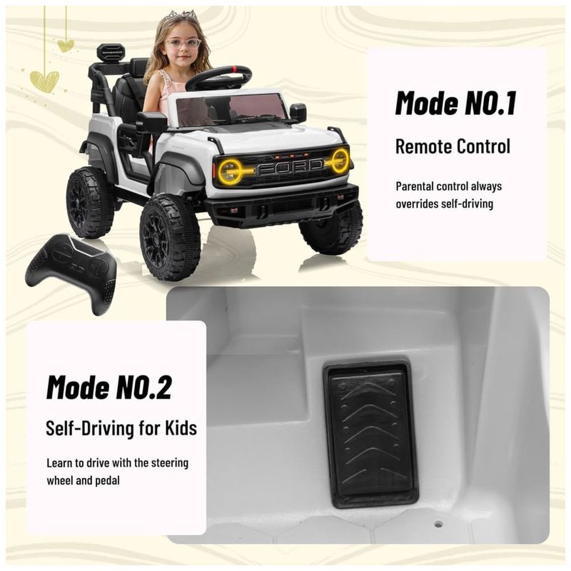 Este carro elétrico infantil é um modelo oficial licenciado pela Ford, inspirado no icônico Ford Bronco Raptor. Com um design detalhado e robusto, ele proporciona uma experiência de direção autêntica e emocionante para seu filho.