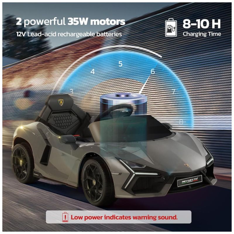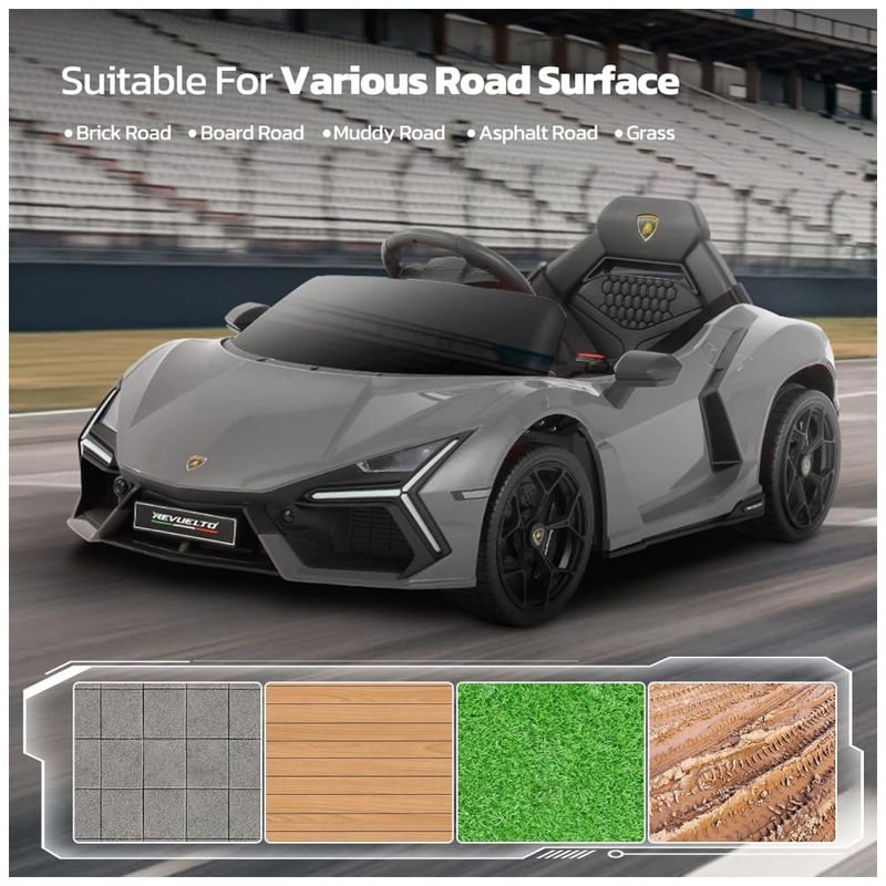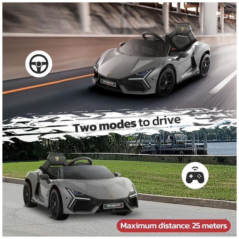 Carro Elétrico Infantil, Lamborghini com Controle Remoto, Porta de Tesoura, MP3 Player, Luz LED e Assento Largo, 12V, ELEMARA, Cinza