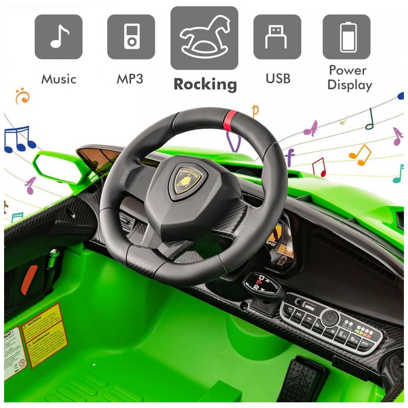 O Carro Elétrico Infantil OLAKIDS Lamborghini Veneno licenciado oferece design esportivo fiel ao modelo real, com portas hidráulicas, faróis e lanternas LED, painel central funcional e spoiler aerodinâmico. Indicado para crianças de 3 a 8 anos (36 a 96 meses), possui bancos duplos, cinto de segurança de dois pontos e portas com travas, proporcionando conforto e proteção.
