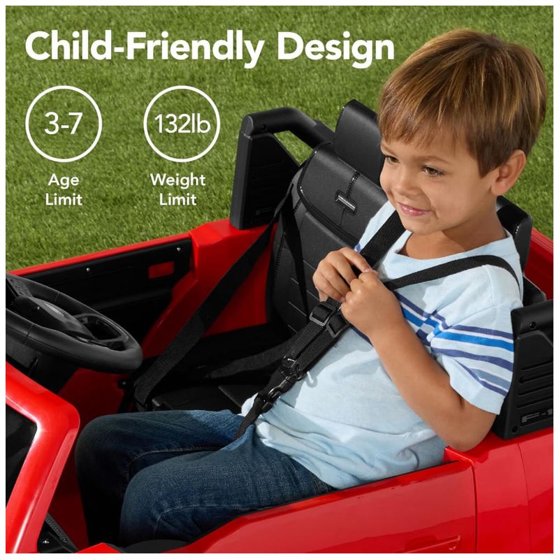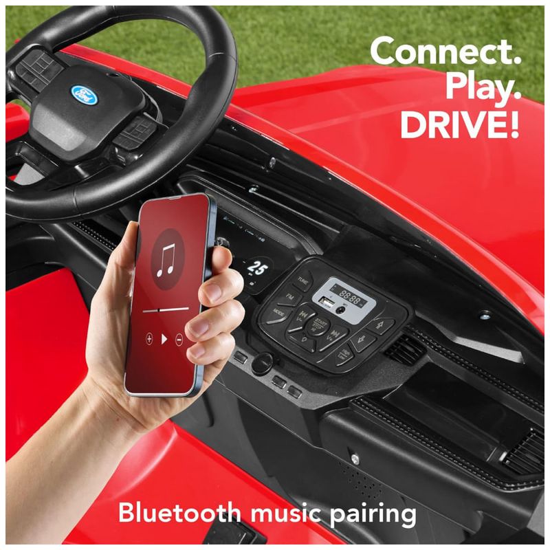 Você pode deixar a criança dirigir sozinha ou assumir o controle com o controle remoto dos pais, que possibilita guiar a direção e o controle de velocidade para segurança total. Enquanto isso, o sistema sonoro Bluetooth integrado oferece a possibilidade de ouvir as músicas favoritas durante as aventuras.